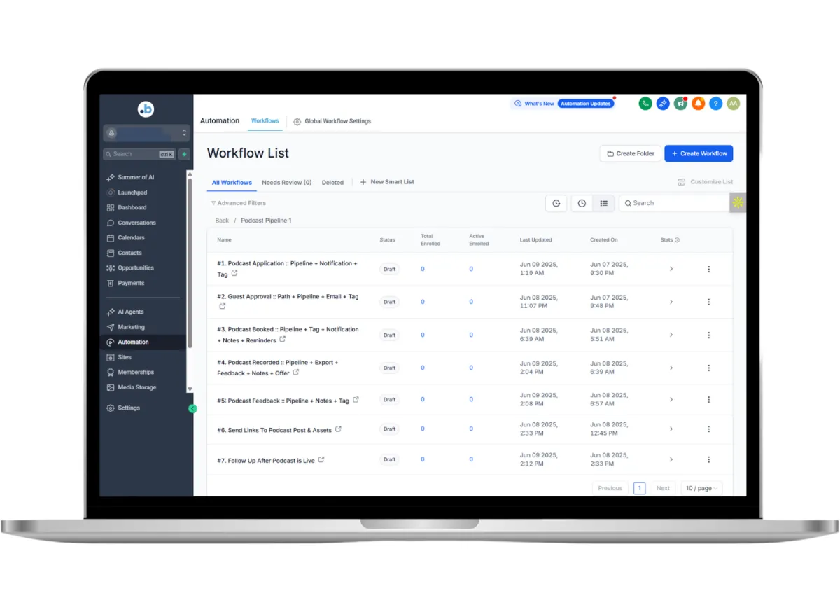 PointB CRM comes with pre-built workflows tailored specifically for franchise consultants and podcasters so the structure is already in place for you.